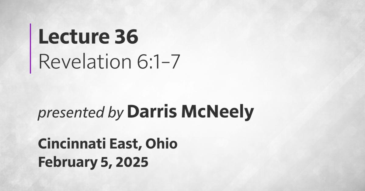 [McNeely]We are ready to get into chapter 6 of Revelation and the opening of the seals. And this is a well-known, very famous part of the book of Revelation. It begins to open up the seals that we read about in chapter 5—God sitting on the throne with a scroll in His right hand, and Christ being the one, only one worthy, worthy as the Lamb, to open those seals and the scroll.